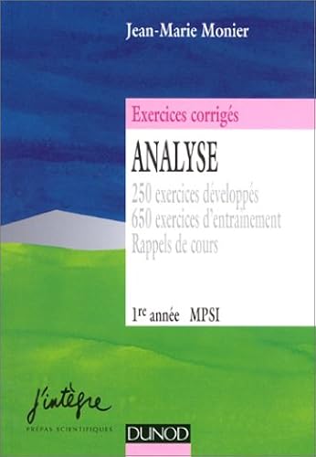 Analyse. 250 exercices développés, 650 exercices d ~ Analyse. 250 exercices développés, 650 exercices d'entraînement, rappels de cours, 1ère année MPSI - Jean-Marie Monier. Ce recueil d'exercices corrigés couvre e