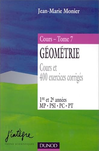 Géométrie. Tome 7, Cours et 400 exercices corrigés - Jean ~ Géométrie. Tome 7, Cours et 400 exercices corrigés - Jean-Marie Monier. L'objectif de ce cours de mathématiques est de devenir l'outil de travail familier, effi